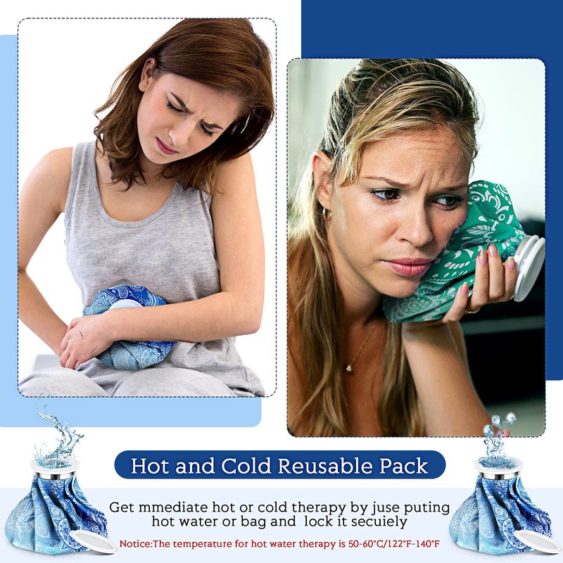 - Function of hot pack: you can fill the screw top ice bag with proper temperature hot water, which is helpful to relax and loosen tissues, improve symptoms in conditions, such as arthritis, headaches, migraines, fibromyalgia, menstrual pain, cramps, spasms, bursitis and stiff necks or backs