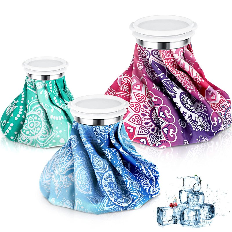 Nuanchu 3 Pieces Ice Bags for Injuries Reusable Ice Pack Hot Cold Water Bag 6 Inches, 9 Inches, 10 Inches Hot Cold Therapy and Pain Relief Pain Screw Top Bag for Sports Knee Head Leg(Datura Style)