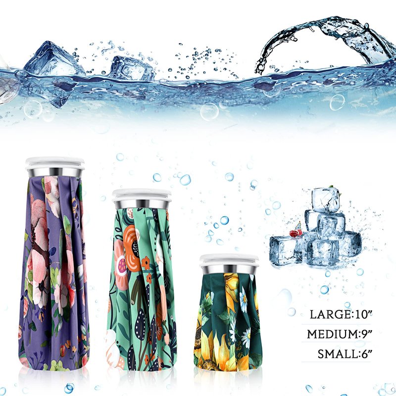 Nuanchu 3 Pieces Ice Bags for Injuries Reusable Ice Pack Hot Cold Water Bag 6 Inches, 9 Inches, 10 Inches Hot Cold Therapy and Pain Relief Pain Screw Top Bag for Sports Knee Head Leg(Flower Style)