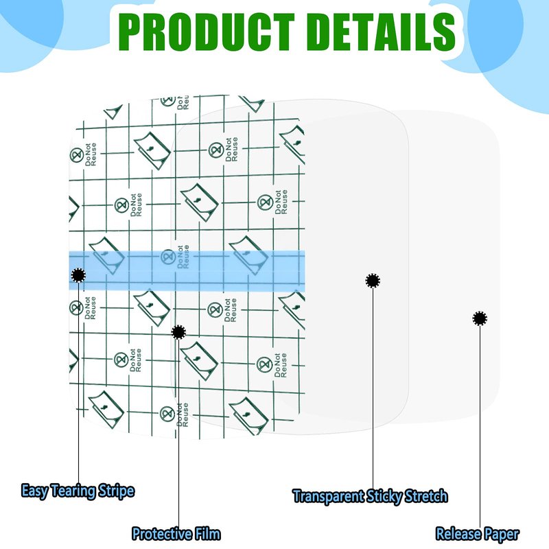 - Design and operation: these transparent protective bandage have a shape like rounded rectangle to satisfy customers' personalized needs; Besides, when using, you only need to peel off the blue line right in the middle of the waterproof transparent adhesive bandage; One step and you will made it