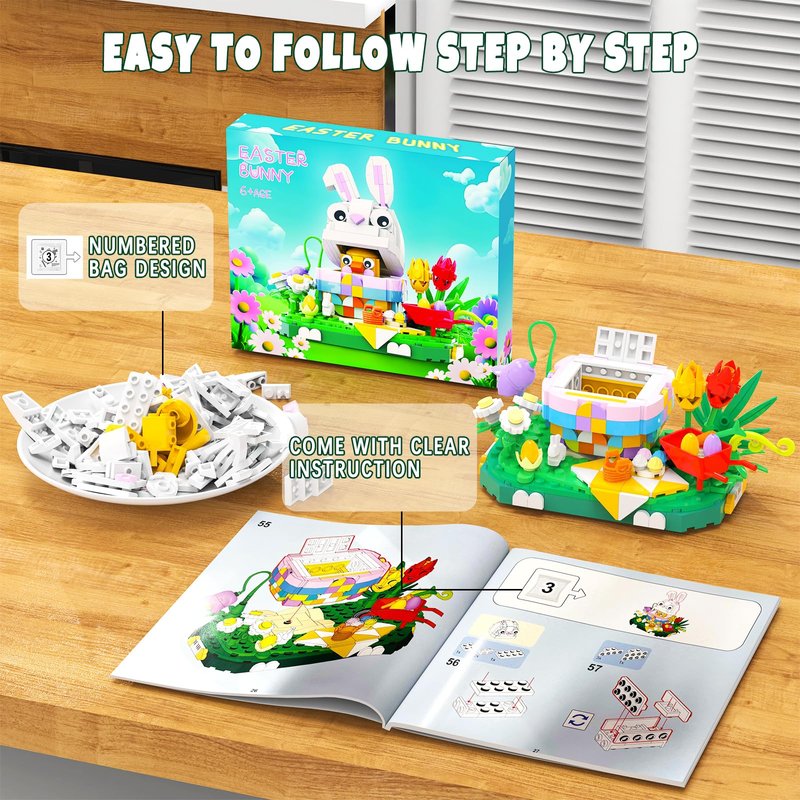 - Interactive Fun for Easter Celebrations: Elevate your kids' Easter experience with our easter bunny and chick building set! Watch as the adorable little chicks play peek-a-boo from within the bunny mouths, creating an engaging and interactive playtime. The colorful flowers, picnic blankets, Easter baskets, and cute little carts add an extra layer of festive delight. This unique design guarantees hours of joyful entertainment for your children, making it the perfect addition to your Easter celebrations!