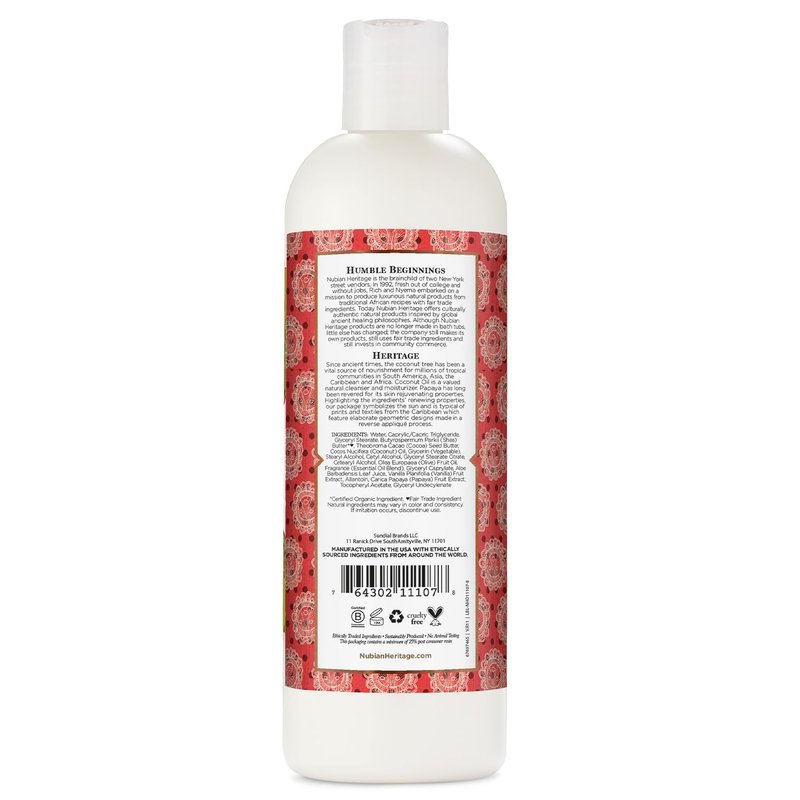- ETHICAL, CRUELTY-FREE SKIN CARE: Founded over 30 years ago on the streets of Harlem, Nubian Heritage proudly celebrates the healing traditions of African shea butter. Our personal care products are sustainably produced without animal testing, using ethically traded ingredients.