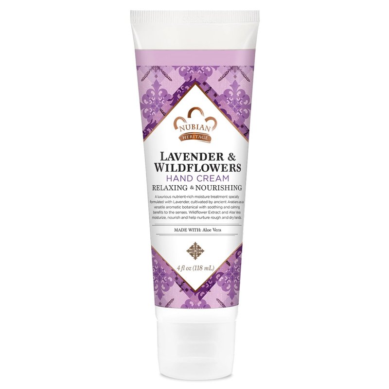 Nubian Heritage Hand Cream, Lavender & Wildflowers with Vitamin E – Light and Luxurious Shea, Mango & Cocoa Butter Lotion with Soothing Aloe Vera & Comfrey, 4 Oz