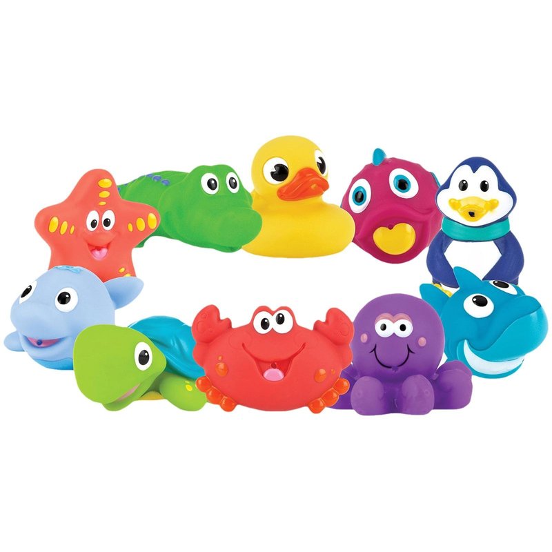 Nuby 10 Count (Pack of 1) Little Squirts Fun Bath Toys, Assorted Characters