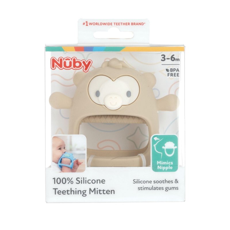 Nuby Silicone Wrist Teething Mitten - Baby Teether Ring - 3+ Months - Brown Monkey