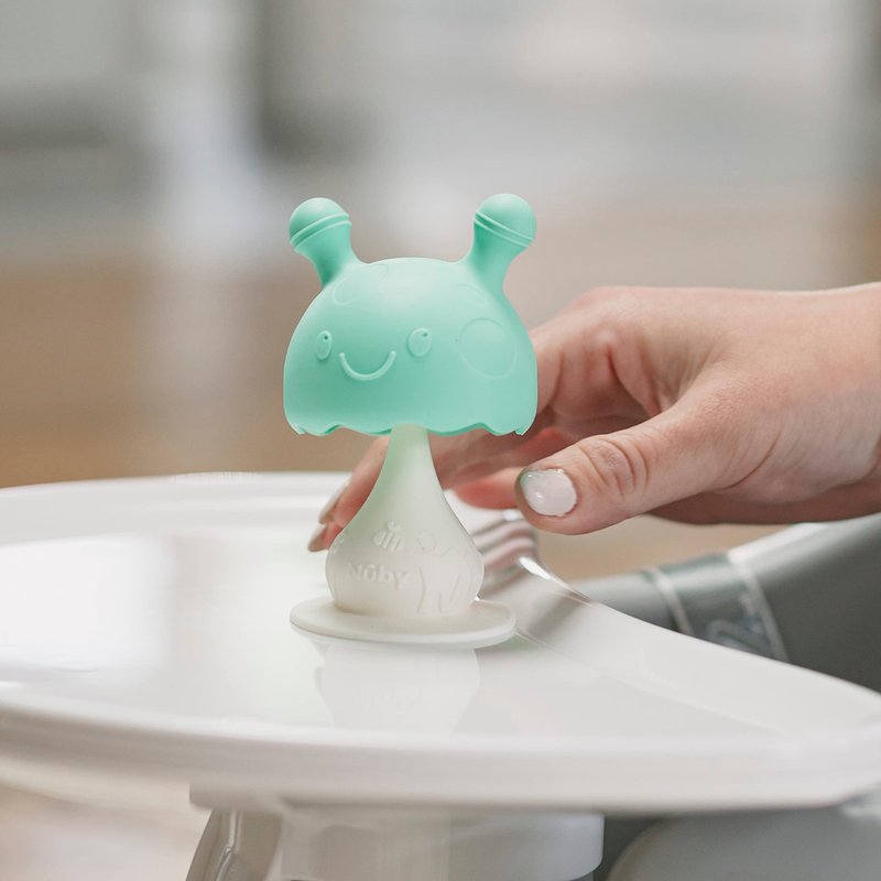 Nuby Super Soft Silicone Teether with Suction Base - Visually Stimulating and Easy to Grasp Toy for Baby Teething Relief - 3+ Months