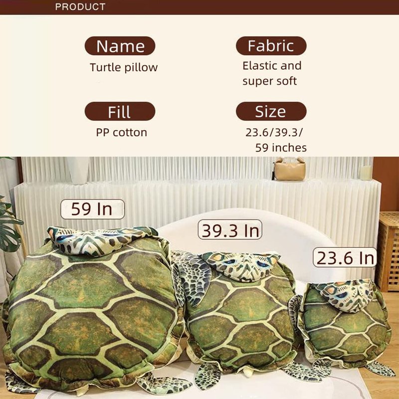 - Size description: The package includes 1 turtle pillow,and we have prepared 3 sizes (23.6 inches,39.3 inches,59 inches) for you. Choose the size you think is suitable