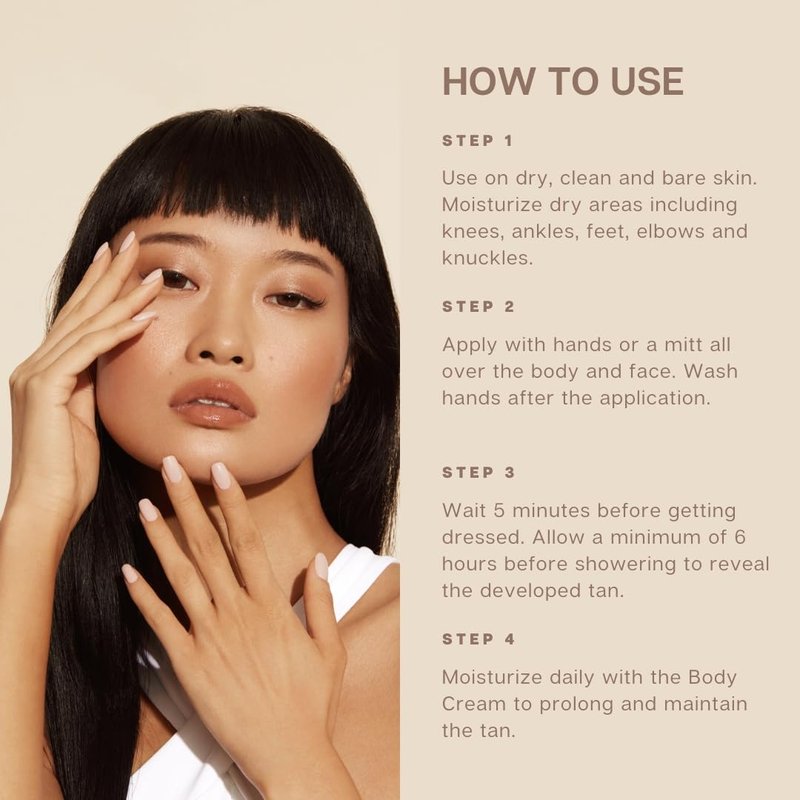 - EASY-TO-USE TANNING LOTION - Unlike instant tanning lotion or other self tanning lotions that make it difficult to achieve an even, natural-looking tan, NUDA’s sunless tanning lotion is simple to use. Start by exfoliating and moisturizing extra-dry areas, then apply the lotion tanner to body and face. Dress after 5 minutes, and wait 6 hours before showering. Voila!