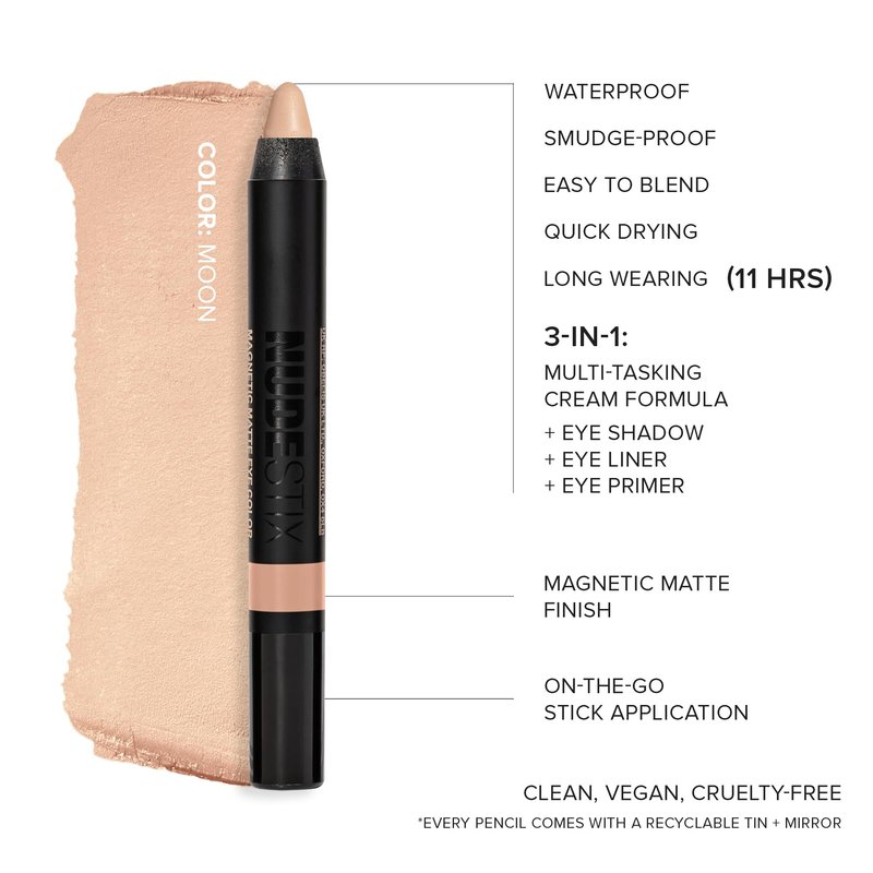 Nudestix Magnetic Matte Eye Color Pencil, Eyeshadow + Eyeliner + Eyelid Primer, Cream Makeup Stick, Long Lasting, Waterproof, Shade: Moon