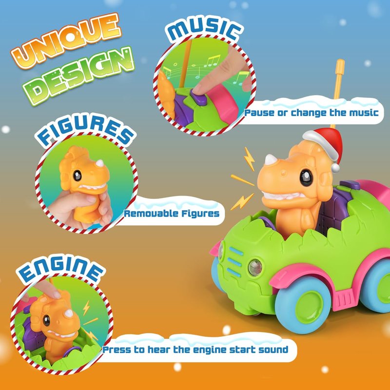 Nueplay Remote Control Car for Toddler Age 2 3 4 5, Electric RC Car Toys with Light & Music, Toddler Dinosaur Toys, Dino Figures Truck Race Car Vehicles, Christmas Birthday Gift for Boys & Girls