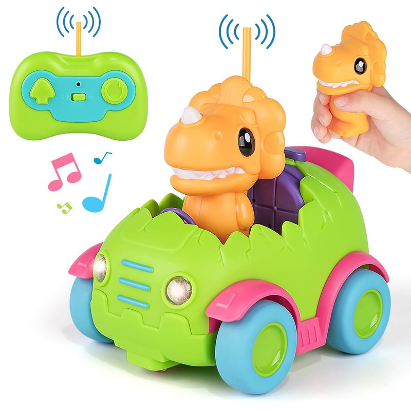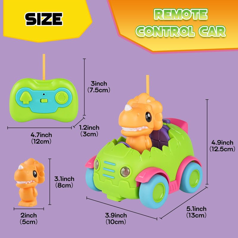 - 【Early Educational RC Cars】Bright colors and eye-catching look, easy to attract baby’s attention. Driving through the ground, stimulate baby's infinite imagination. Due to the Easy operation,the remote control toy helps exercise baby's finger dexterity, fine motor skills, hand-eye coordination and logical thinking. Interesting music and sound effects help to stimulate the baby's musical awareness and develop the baby's hearing