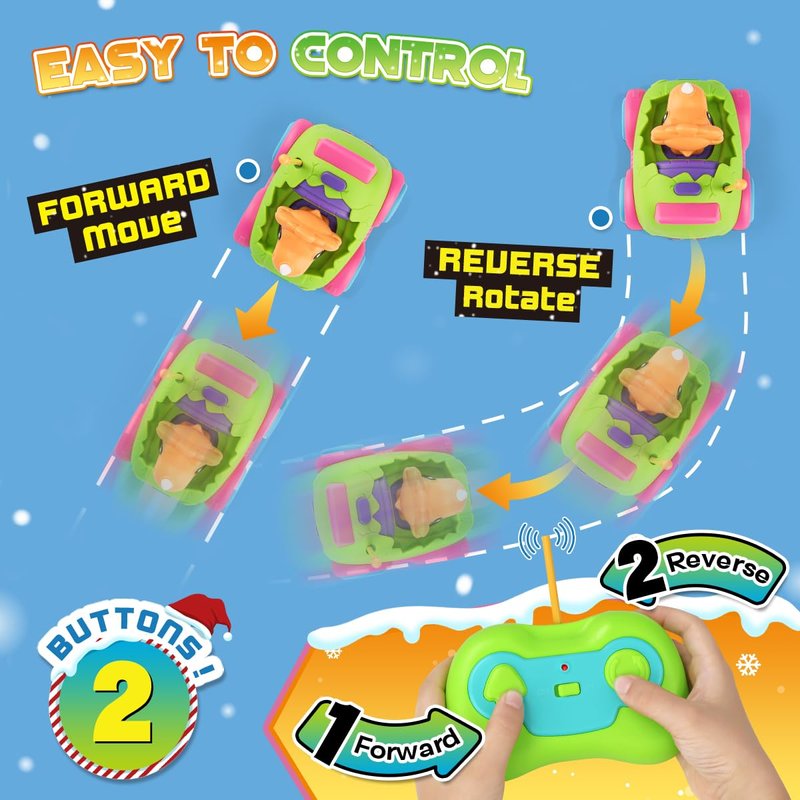 - 【Adorable Shape Cartoon Remote Control Car】The remote control car set included an adorable egg shaped car and a removable action figure with 3 fun musics and flashing headlights. Made from high-quality material, smooth round edges and burr-free, durable and safe enough for baby to operate