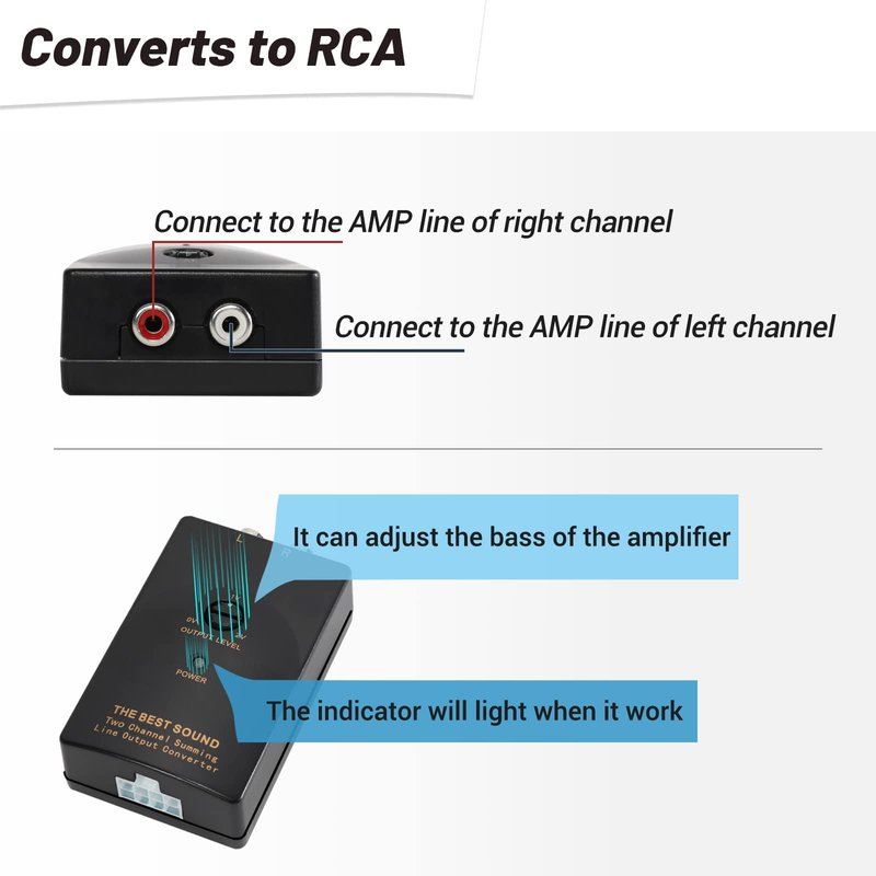 - Convert car stereo speaker wire output to RCA Cable outputs. In order to improve the sound quality, the function of RCA output can convert high to low. The high voltage signal output of the amplifier/speaker converts to low-voltage signal.