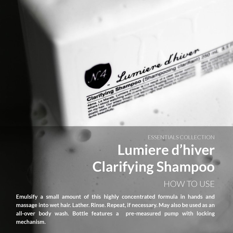 - Number 4 Hair Care 8.5 oz Clarifying Shampoo: Deep cleansing treatment shampoo clarifies hair and scalp to remove build-up, oils, hard water minerals and impurities for salon-quality results at home.