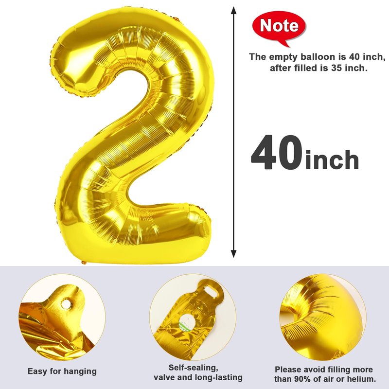 Number Balloon Big 40 Inch Gold Birthday Decorations, Number 2 Balloon Birthday Party Decorations for Party Supplies, Graduations
