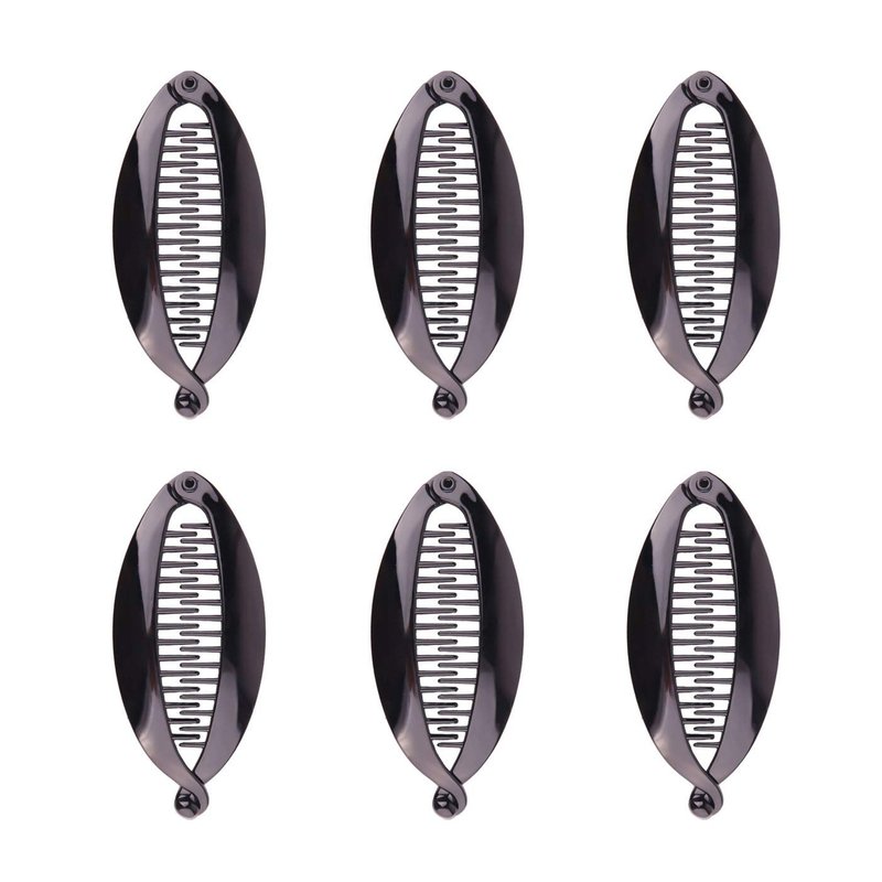 Numblartd 6Pcs Black Plastic Fish Shape Banana Hair Clip Hair Comb - French Fashion Ponytail Shark Clip Hair Clincher Hairgrip DIY Hair Accessories for Women (Length 4.5inch)