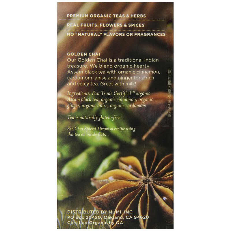 Numi Organic Tea Golden Chai, Full Leaf Black Tea in Teabags, 18-Count Box (Pack of 6)