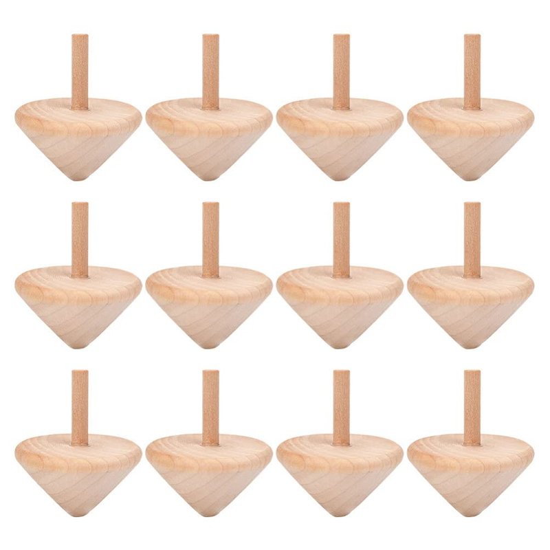 NUOBESTY Wooden Spinning Top Unfinished Wood Tops Craft Gyroscopes for DIY Kids Children Toy Party Favor New Year 12Pcs