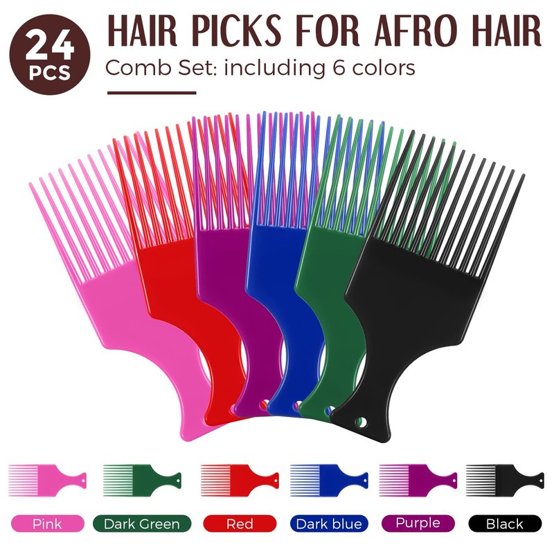 - Comb Set: there are 24 pieces of hair picks including 6 colors, black, dark blue, dark green, red, pink and purple, 4 pieces for each color; They measure about 5.7 x 2.5 inches, which can be easily put into a bag, convenient for you to carry around