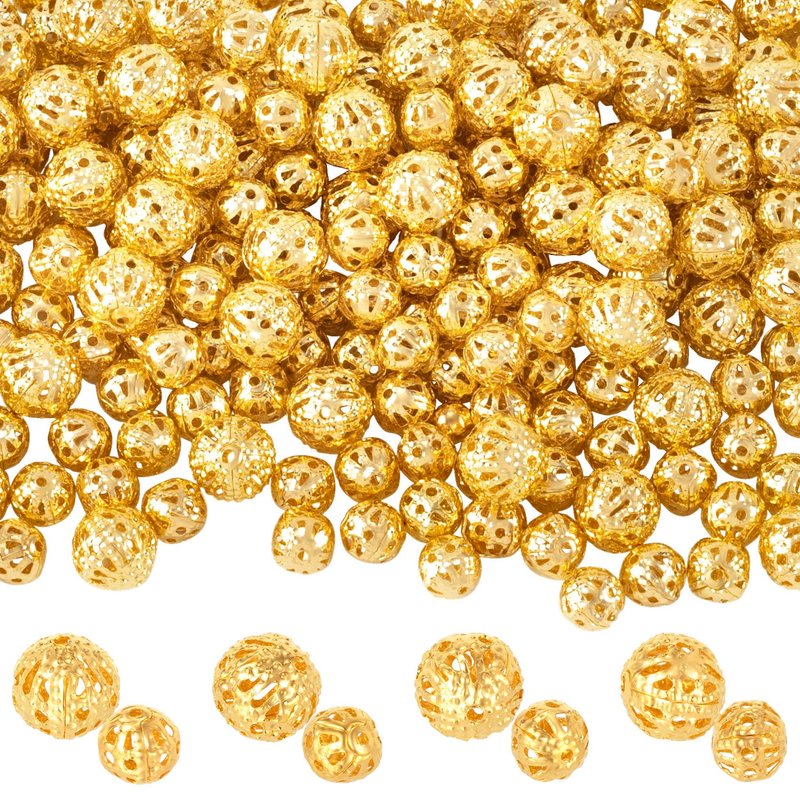 Nuorest 250pcs Round Gold Spacer Beads, Brass Spacer Beads with Hollow Out Style, Gold Beads for Bracelets Necklace Making Crafts, Small Filled Beads (6mm, 8mm)