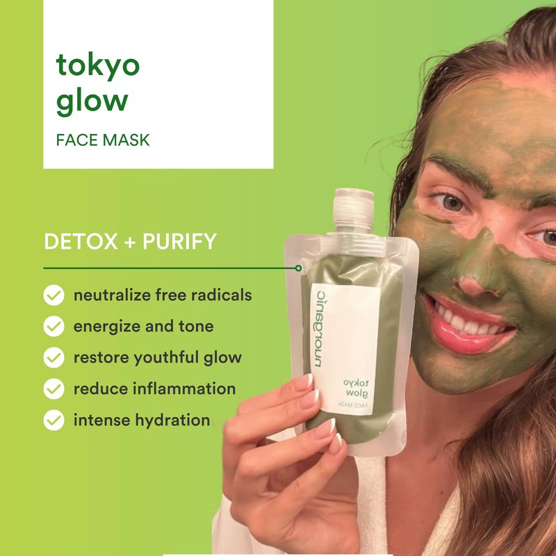 - Introducing Tokyo Glow Face Mask: Experience the ultimate rejuvenation for your skin with this unique blend of potent ingredients. Tokyo Glow combines the power of Matcha Green Tea, Bentonite Clay, Guarana, and Hyaluronic Acid to give you a truly radiant complexion.
