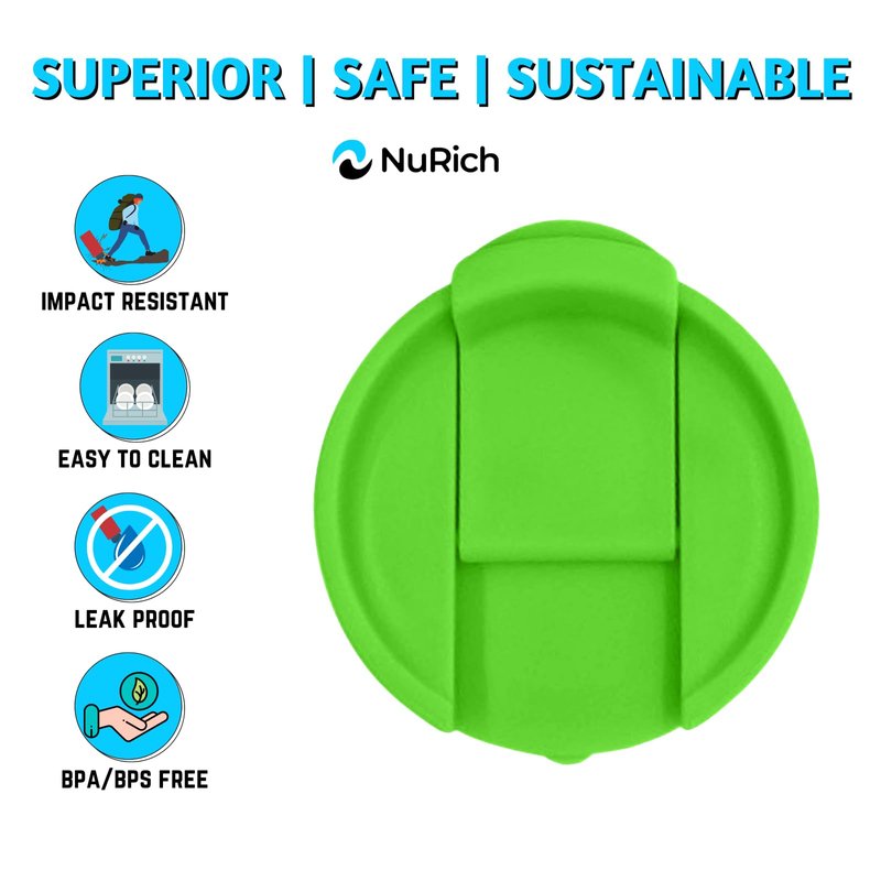 NuRich Green Hydro Wide Mouth Flip and Sip Replacement Coffee Lid or Cap Accessories Compatible with Hydroflask, Nalgene, and Many More Top Water Bottle Brands Sizes 12 16 18 20 32 40 64 Ounce