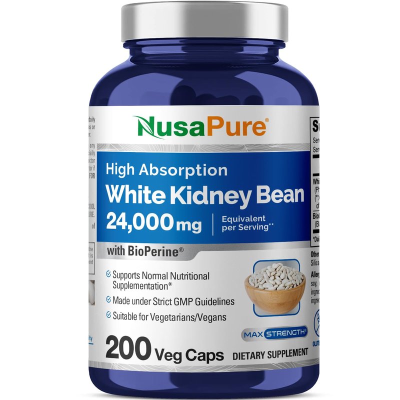 NusaPure White Kidney Beans 24,000mg per Serving - Bioperine - Extract 30:1 (Vegetarian, Gluten-Free, Non-GMO)