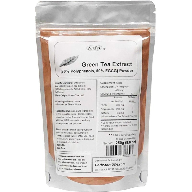 NuSci Green Tea Extract Bulk Powder Standardized 98% Polyphenols and 50% EGCG GMO Free Non-Irradiated (250 Grams (8.8 oz))