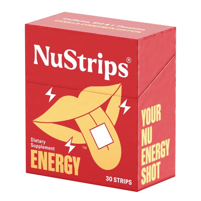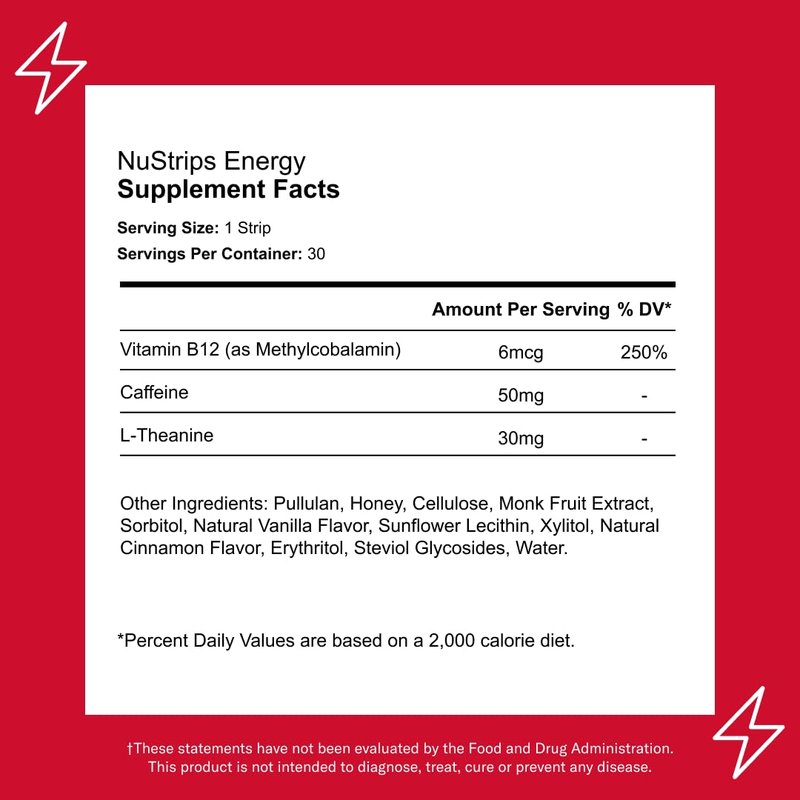 NuStrips Energy | Natural, Instant Energy Strips with 50mg Caffeine, L-Theanine, Vitamin B12 | 30 Energy Strips = 30 Energy Drinks | 5X Faster Absorption (Cinnamon Vanilla)