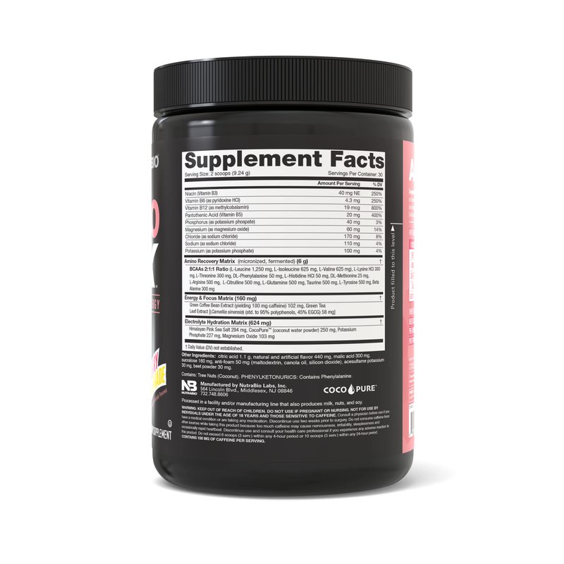 From NutraBio comes Amino Kick - your all day amino energy drink. With fully disclosed doses of BCAA's, Essential Amino Acids, and Caffeine from Green Coffee Bean Extract, Amino Kick is a perfect supplement to use for a boost pre-workout, intra workout or post workout to help support muscle recovery. Amino Kick also features a complete electrolyte blend to help support balanced hydration, B-Vitamins and Beta Alanine to help make it your perfect all day energy formula.