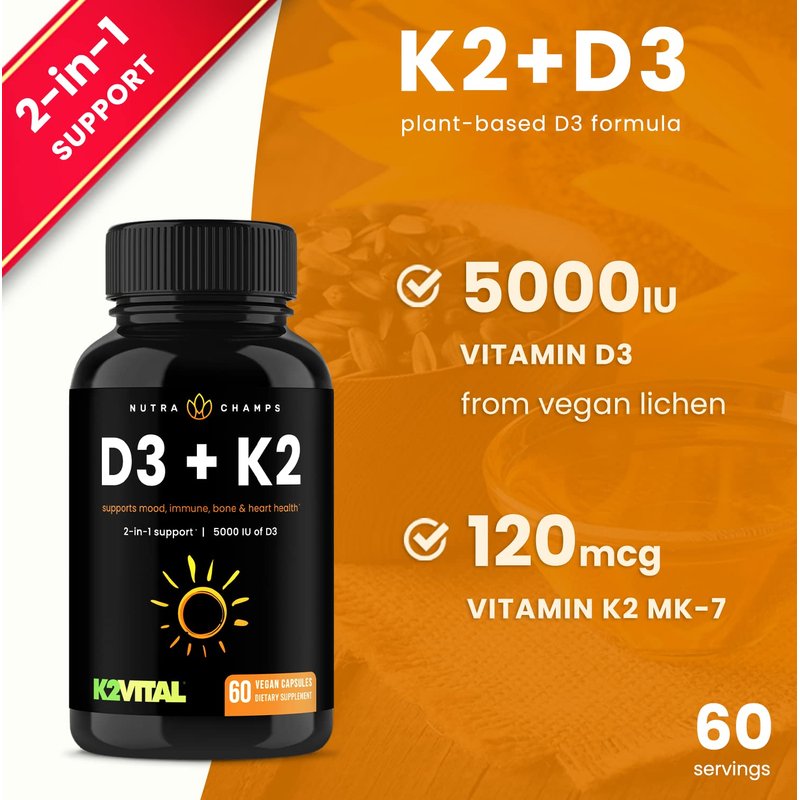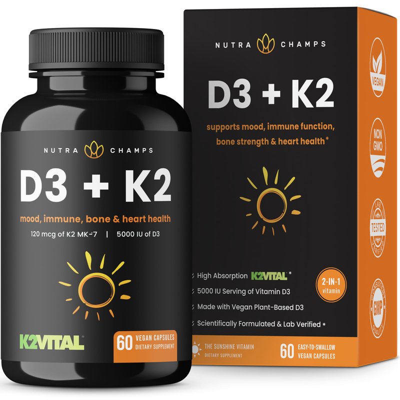 NutraChamps K2+D3 combines two powerful nutrients extensively researched for their ability to contribute to the health of your bones, teeth, and heart. Vit dr berg d3 and k2 sports research k2 d3 d3k2 for women and men - nutrient