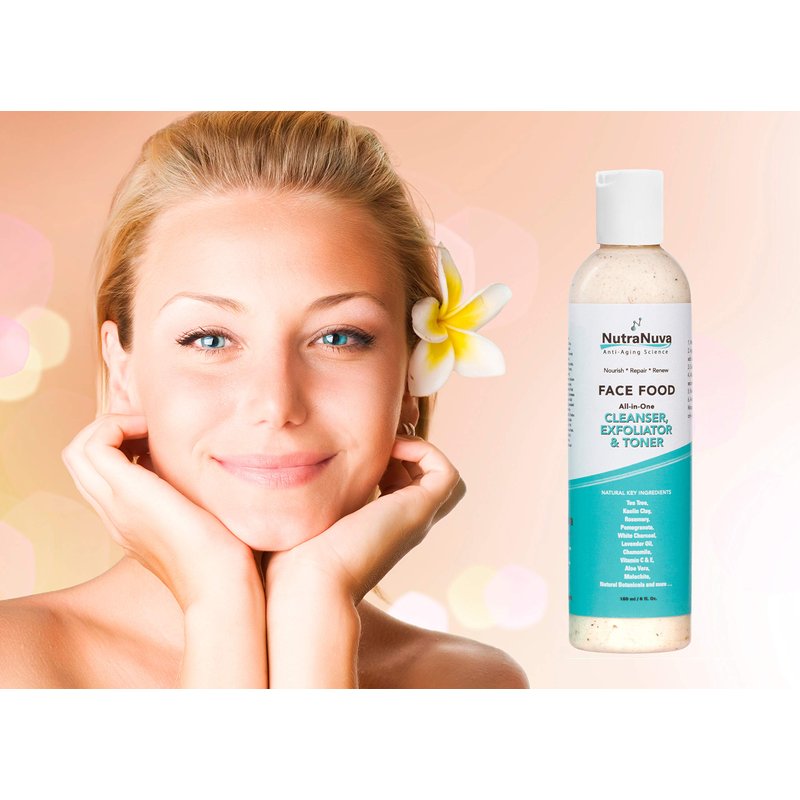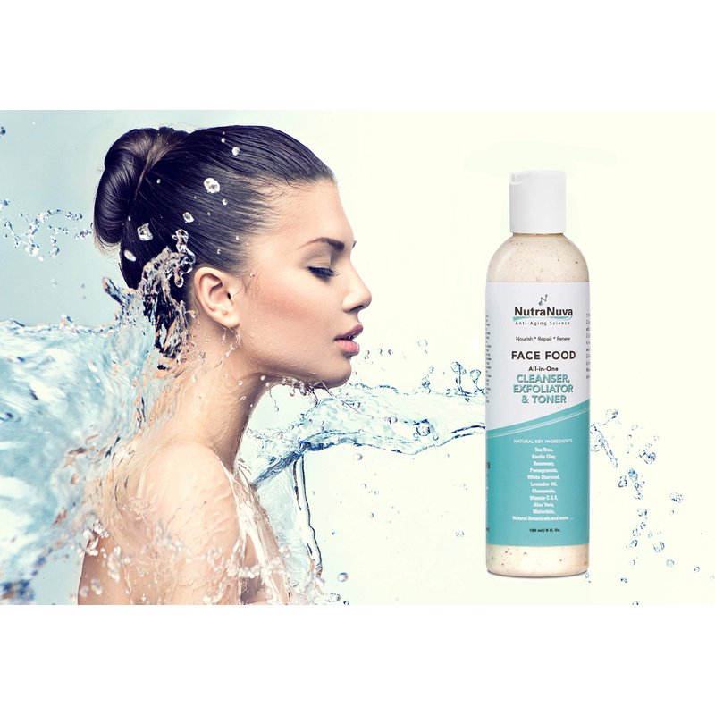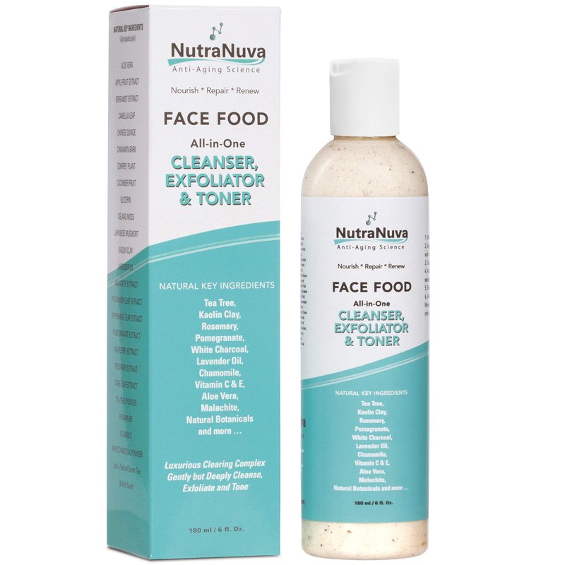 NutraNuva Face Food – Cleanser, Exfoliator & Toner All-in-One – Clear Skin Natural Vegan Facial Wash, Tea Tree & Clay, Gentle Clean Anti Aging, Not Drying/Oily, Restore pH, Fight Acne, 6 Oz