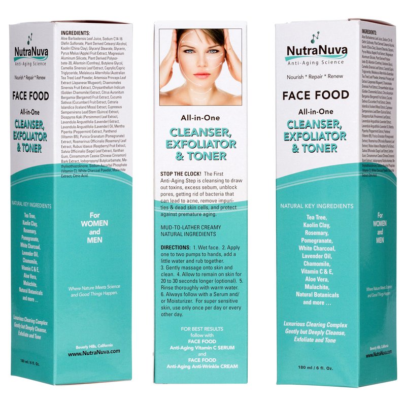 - ALL-IN-ONE CLEANSER, EXFOLIATOR & TONER from NutraNuva has Creamy Mud-To-Lather Natural Ingredients that Help Protect Against Premature Aging & Sun Damage, Reduce Swelling & Puffiness, and Gently Exfoliates to Rejuvenate the Skin. Tightens Pores, Hydrates & Restores pH. Your Skin Will Be Perfectly Prepared to ABSORB ALL THE BENEFITS from Your Favorite Serum and Moisturizer to Maintain a Youthful Complexion. Lightener & Brightener.