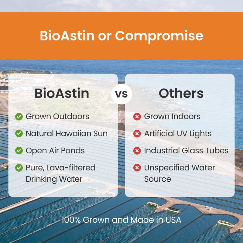 - Trustworthy Transparency: 'Made in the USA' doesn't mean 'Grown in the USA'; we have been responsibly and sustainably cultivating microalgae for BioAstin Hawaiian Astaxanthin in Kona, Hawaii for over 40 years, ensuring your confidence and well-being
