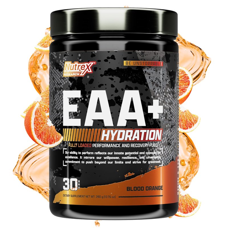 Nutrex Research EAA Hydration | EAAs + BCAAs Powder | Muscle Recovery, Strength, Muscle Building, Endurance | 8G Essential Amino Acids + Electrolytes | Blood Orange Flavor 30 Serving