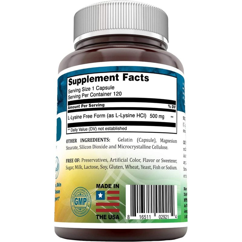 - KEEP SUPPLEMENTATION SIMPLE whether you're using lysine for cold sores, for immune support, to promote healthy bones or for another purpose, Amazing Formulas makes it easy to benefit from the amino acid l- lysine. Single capsule of our L-Lysine dietary supplement provides 500 mg of pure L-lysine.