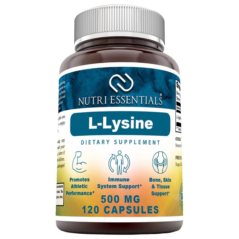 Nutri Essentials L-Lysine - 500mg Amino Acid Vitamin 120 Capsules - Commonly Used for Cold Sores, Immune Support, Respiratory Health & More