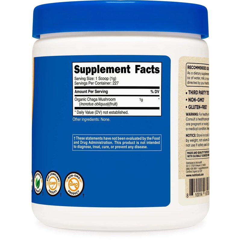 Nutricost 100% Organic Chaga Mushroom Powder 8oz (227 Servings) - Certified USDA Organic, Gluten Free & Non-GMO