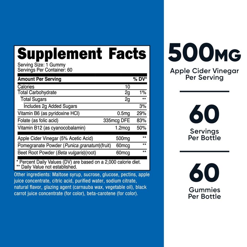 - 60 Apple Cider Vinegar Gummies In Each Bottle