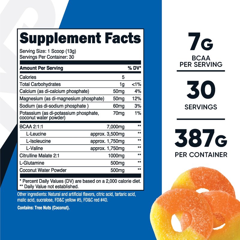 Nutricost BCAA + Hydration Powder (Peach Rings) 30 Servings - Branched Chain Amino Acids with Hydration Complex - Gluten-Free, Non-GMO