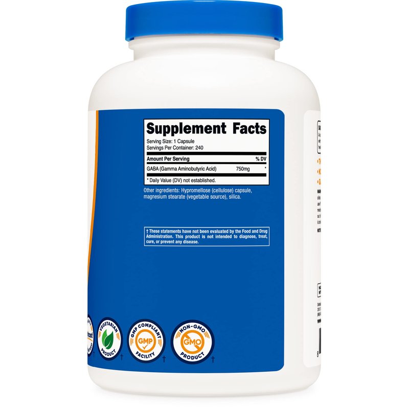 Nutricost GABA (Gamma Aminobutyric Acid) 750mg, 240 Capsules, 240 Servings - Non-GMO, Gluten Free