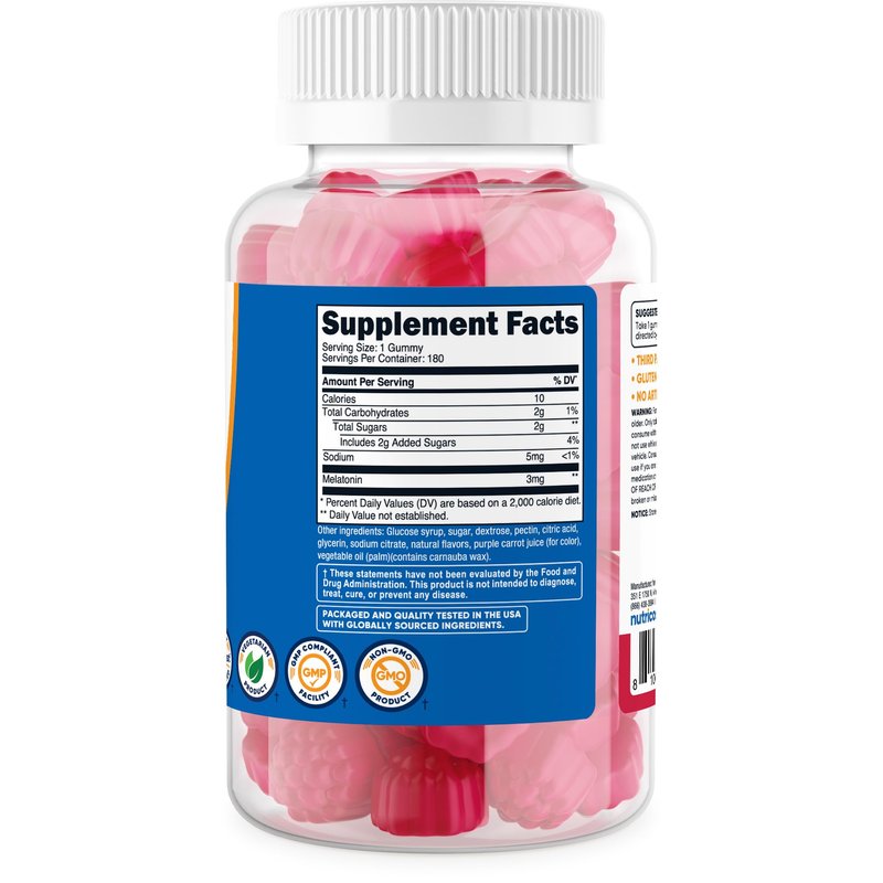 Nutricost Melatonin 3mg, 180 Gummies, Strawberry Flavored - Gluten Free, Non-GMO, No Corn Syrup
