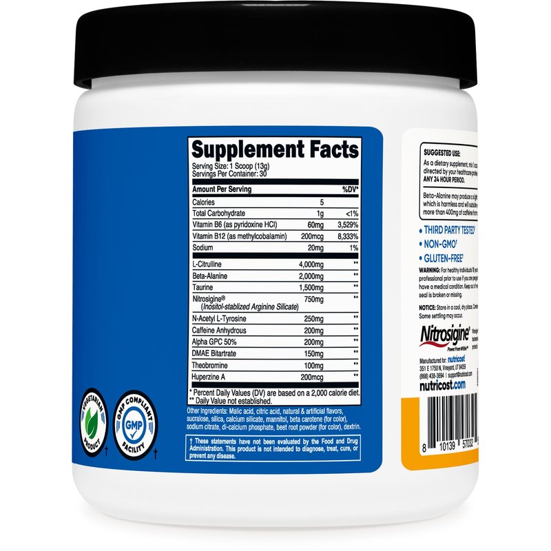 - Formulated with a strategic blend of beta-alanine, taurine, l-citrulline, and n-acetyl l-tyrosine
