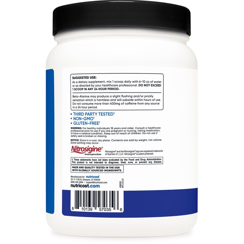 - Performance-Optimizing Ingredients: Formulated with a strategic blend of beta-alanine, taurine, l-citrulline, and n-acetyl l-tyrosine, Nutricost's Pre-Workout Complex is designed to support endurance, focus, and overall athletic performance. Maximize your potential with every scoop.