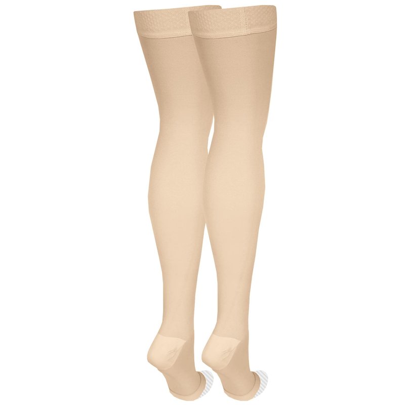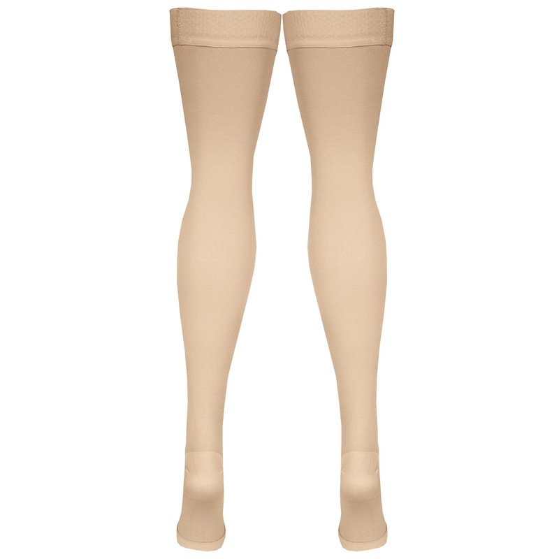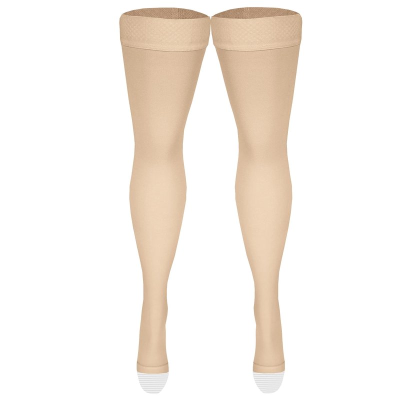 NuVein Medical Compression Stockings, 20-30 mmHg Support, Women & Men Thigh Length Hose, Open Toe, Light Beige, Medium