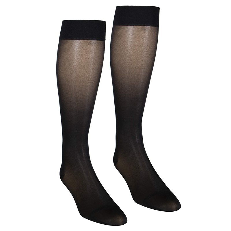 NuVein Sheer Compression Stockings, 15-20 mmHg Support, Women's Medium Denier Nylons, Knee High, Closed Toe, Black, Small