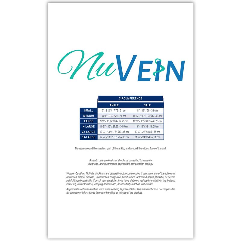 - NuVein 15-20 mmHg designer support hose women; 20 denier nylons; Massaging graduated compression