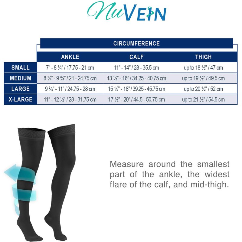 NuVein Sheer Compression Stockings for Women, 15-20 mmHg Support, Medium Denier, Thigh High, Closed Toe, Black, Small