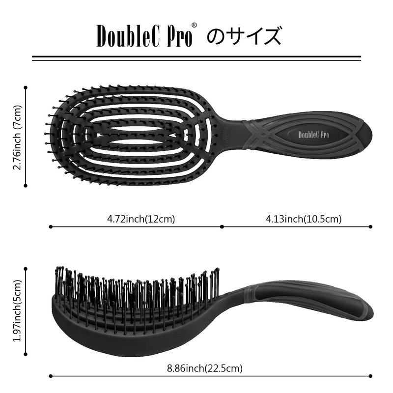 NuWay 4HAIR® DoubleC PRO® U.S. Patented Double Curved Detangling Brush is Hair Dryer Safe (Iron Black)