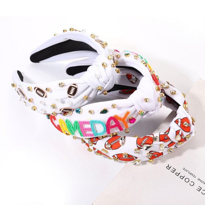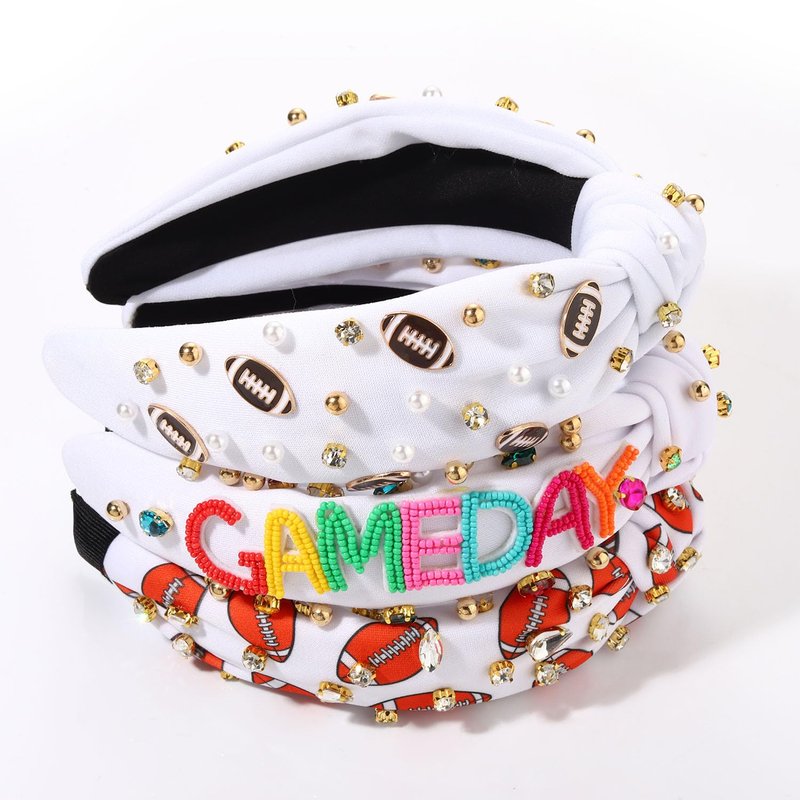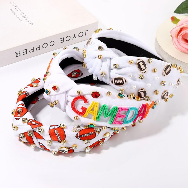 - ღ Game Day Headbands: Get game-day ready with our trendy game-day collection! Show your team spirit in style with our football accessories designed to elevate your game-day look. Including 3 pieces jeweled knotted headbands, a enamel football charm embellished headband, a letter Game Day headband and a printed football headband, offer a comfortable fit and feature team inspired colors, allowing you to showcase your loyalty with every wear. Ready to clap and cheer at the next game!